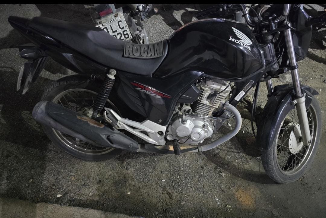 Com base nas características repassadas — uma Honda CG 160 Start, de cor preta — os policiais iniciaram diligências pela cidade. Durante as rondas, o veículo foi localizado estacionado na Rua Minervina Francisca da Conceição, em frente à UPA Noel Macedo, no bairro Itapoá.
