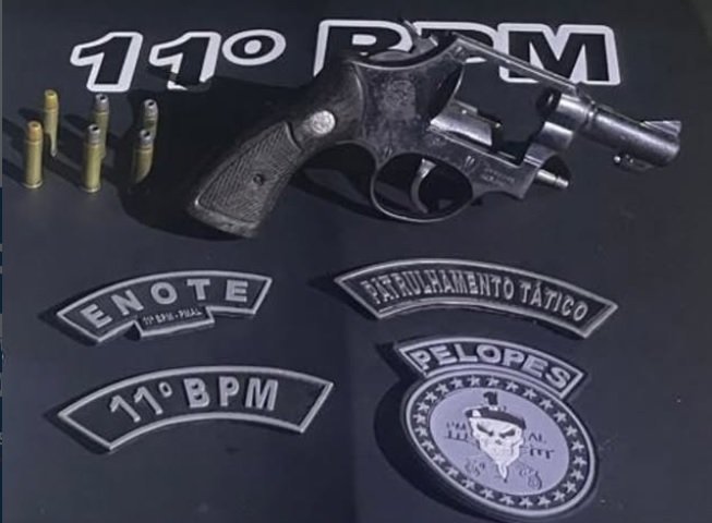 Durante a abordagem, um dos indivíduos arremessou um objeto por cima do muro. Em seguida, os policiais encontraram um coldre de couro em sua cintura. Questionado, o suspeito confessou ser proprietário de um revólver calibre .38, municiado com seis munições, que foi localizado posteriormente sobre o telhado de uma residência.